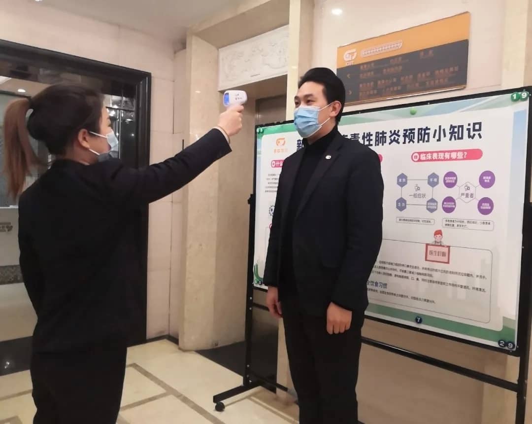 自新冠肺炎疫情發(fā)生以來,春江集團迅速成立以張洪梅董事長為組長的疫情防控工作領(lǐng)導(dǎo)小組,制定下發(fā)《新冠病毒應(yīng)急預(yù)案》、《春江集團復(fù)工疫情防控工作方案》等文件,嚴格落實防控措施,購買口罩、防護服、消毒粉、酒精、紅外測溫槍、溫度計等防護物資。除必要的值班人員外,其余人員一律不得進廠,重點崗位人員穿防護服上崗,每日發(fā)放口罩,每日兩次量體溫,就餐采取一人一桌,同向就餐。組建由中高層領(lǐng)導(dǎo)、黨員、退役軍人為骨干的突擊隊,每日對廠區(qū)、辦公樓、宿舍、餐廳等區(qū)域進行消毒并做好記錄。保衛(wèi)部門嚴格人員出入登記、體溫測量及酒精消毒。