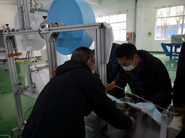 紅豆集團工作人員在調(diào)試口罩生產(chǎn)線。受訪者供圖