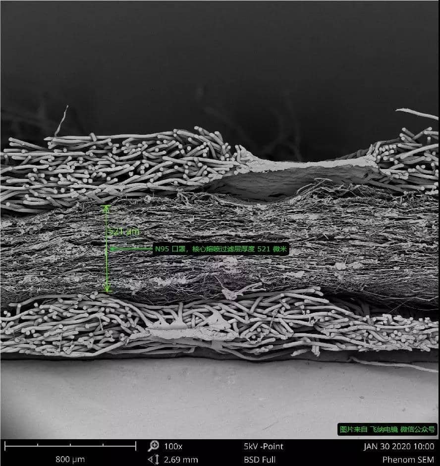 N95 口罩截面圖,飛納臺式掃描電鏡拍攝