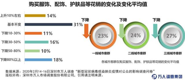 此外,服裝和化妝品方面,很多品牌關閉了中國內地部分門店以減少成本,并逐步將重心轉至線上。數(shù)據(jù)顯示,由于服飾和化妝品仍可從線上渠道購買,31%的市民表示支出整體維持不變,但是由于快遞停運、物流周期過長等原因,整體購物體驗并不好,55%的市民表示支出有所下降,其中下降超過80%的占比達到18%。