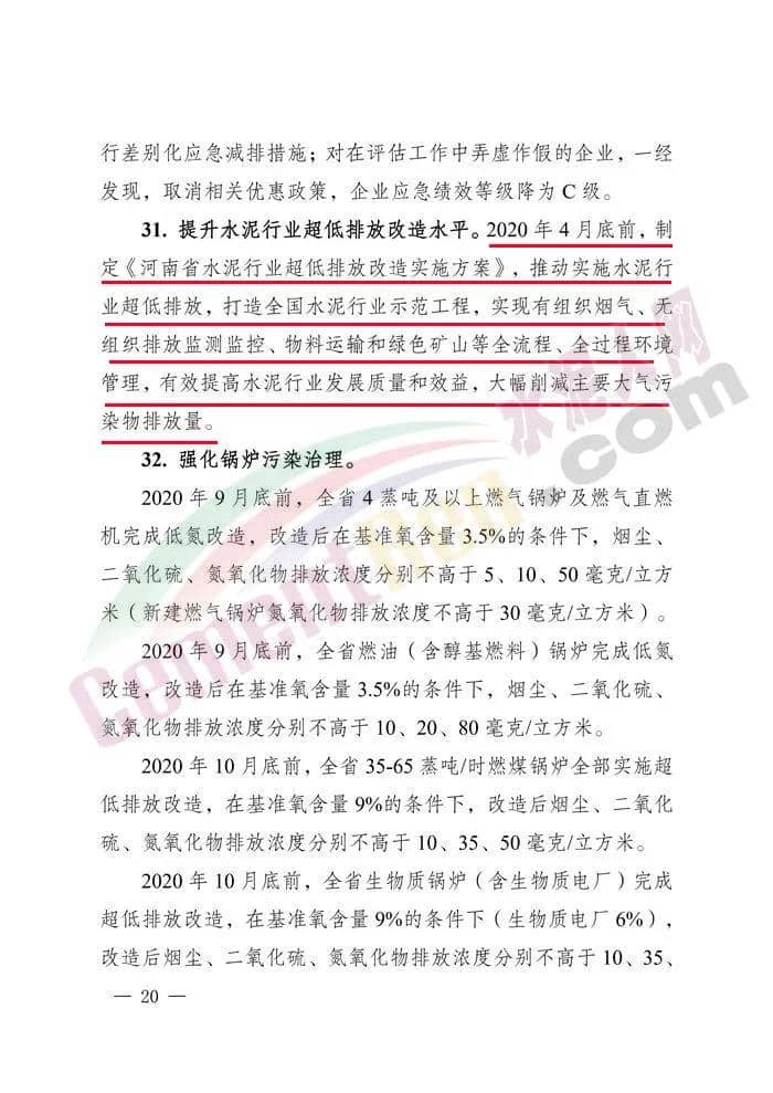 4.提升水泥行業(yè)超低排放改造水平。2020年4月底前,制定《河南省水泥行業(yè)超低排放改造實施方案》,推動實施水泥行業(yè)超低排放改造。