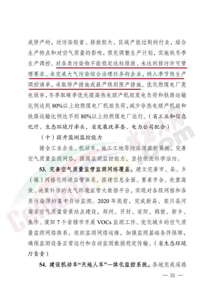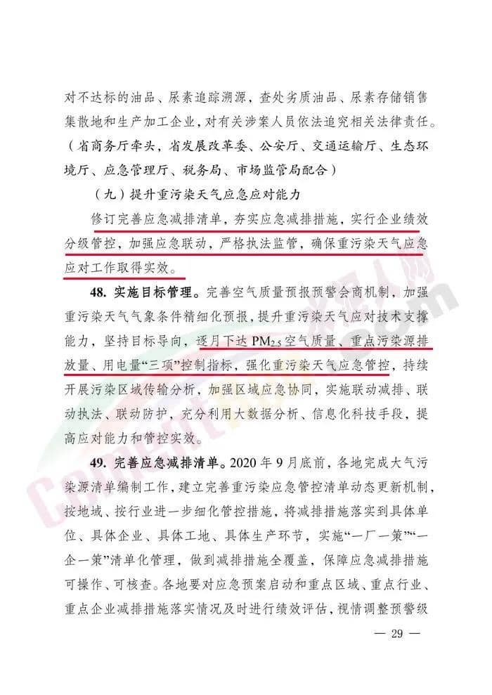 7.2020年9月底前,制定季節(jié)性生產(chǎn)調(diào)控方案,秋冬季重污染天氣預警期間,對水泥等生產(chǎn)工序不可中斷或短時間內(nèi)難以完成停產(chǎn)的,對污染較重、排放較大、區(qū)域產(chǎn)能過剩的行業(yè),結(jié)合生產(chǎn)特點和對空氣質(zhì)量的影響,預先調(diào)整生產(chǎn)計劃,實施秋冬季生產(chǎn)調(diào)控。