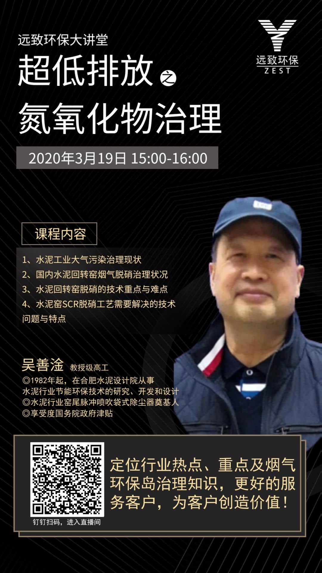 為了讓更多的業(yè)內(nèi)人士全面的了解水泥工業(yè)大氣污染治,遠(yuǎn)致環(huán)保大講堂第一期課程,邀請(qǐng)水泥行業(yè)專家——窯尾脈沖噴突袋式除塵器奠基人吳善淦老師和大家共同探討水泥工業(yè)大氣污染治理現(xiàn)狀、國(guó)內(nèi)水泥回轉(zhuǎn)窯煙氣脫硝治理狀況、水泥回轉(zhuǎn)窯脫硝的技術(shù)重點(diǎn)與難點(diǎn)、水泥窯SCR脫硝工藝需要解決的技術(shù)問題與特點(diǎn)等問題。時(shí)間為2020年3月19日15:00~16:00,精彩內(nèi)容,邀您共享!