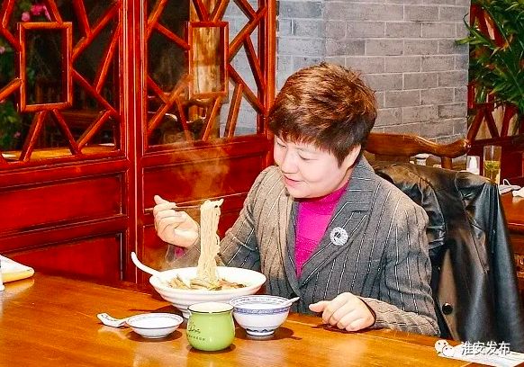這天,在淮安市區(qū)交通路上的浦樓面館,市委書記蔡麗新點(diǎn)了份淮安特色小吃——長魚面,她邊吃邊夸,“真好吃!”