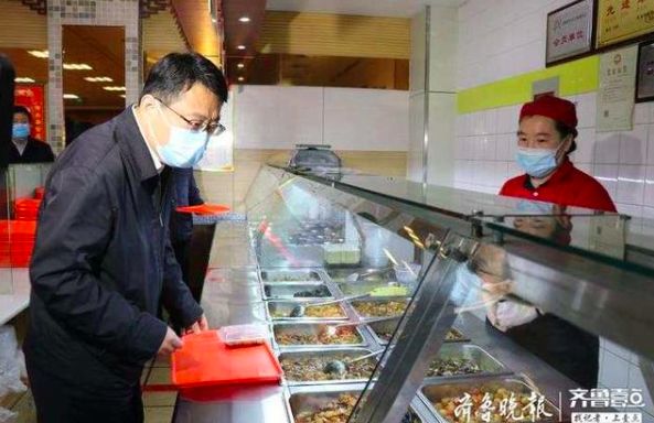 3月11日下午,山東省商河縣縣委書記翟軍在該縣超意興店就餐時,點(diǎn)了塊“把子肉”和一盒米飯吃。翟軍說,“我?guī)€頭,讓大家有信心在做好疫情防控的前提下,走進(jìn)餐廳吃堂食。”