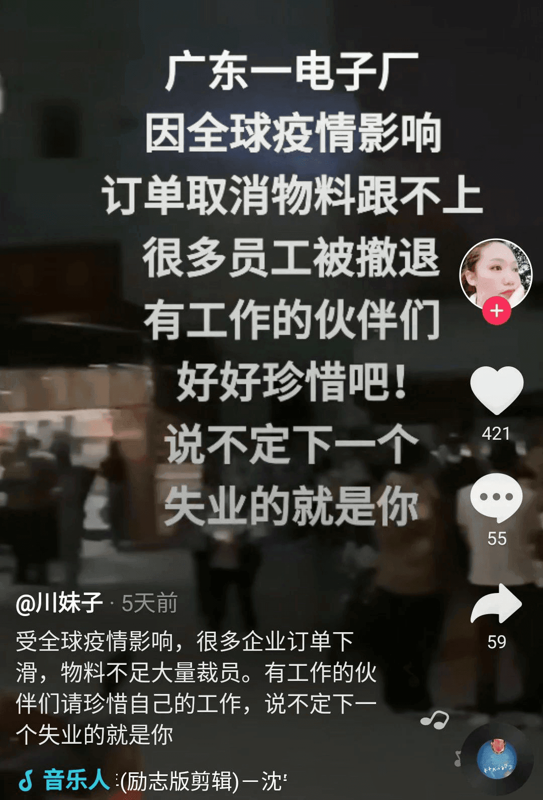 剛剛從國內(nèi)延遲復(fù)產(chǎn)復(fù)工的第一波壓力中走出來的中國外貿(mào)企業(yè),又將迎面承接第二波壓力:由于國外疫情控制導(dǎo)致的延遲消費、 訂單擱置或者取消,不得不剛開工即按下暫停鍵。廠房租金和稅費要付,工人工資要付,部分企業(yè)已開始裁員……中國近五千萬外貿(mào)從業(yè)人員正在集體承擔(dān)壓力。放假至少還有回來復(fù)工的機會,但下面這些企業(yè)和員工就沒這么幸運了。部分企業(yè)訂單取消,物料也跟不上,索性裁員一勞永逸,廠子也幾近放棄狀態(tài)。某企業(yè)半個月前還在大量招工,突然就宣布噩耗,門店關(guān)閉,臨時工隊伍解散,廠區(qū)內(nèi)有很多工人不禁潸然淚下,不知是在為自己的遭遇難過,還是在為整個家庭的未來擔(dān)憂。