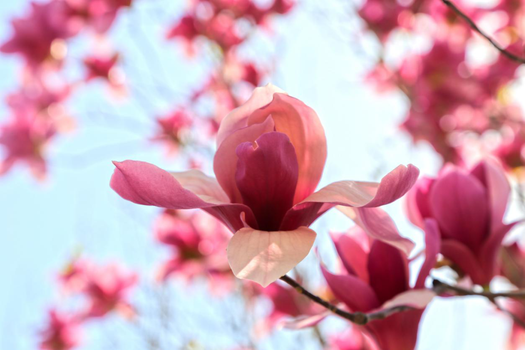 辦公樓前的玉蘭花已綻開,如一個個俏美人,栩栩如生地在風(fēng)中搖曳,美麗清新、綠色盎然,散發(fā)著淡淡的清香,在陽光下朝氣蓬勃、奮發(fā)向上。