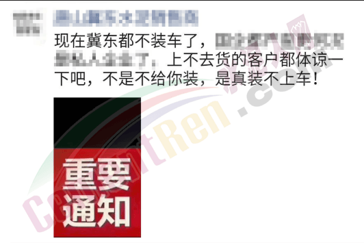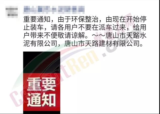 據(jù)水泥人網了解,應此前唐山市豐潤區(qū)生態(tài)環(huán)境保護工作領導小組辦公室文件要求每日20時至次日8時禁止運輸車輛進入廠區(qū)內,并未停發(fā)水泥。部分企業(yè)因庫容量較小,為保供重點客戶對部分經銷商客戶暫停供應。