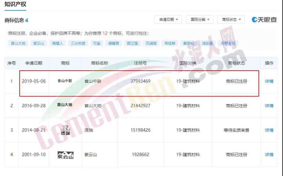 許昌紫云山建材有限公司:“首山中聯(lián)”商標(biāo)已注冊