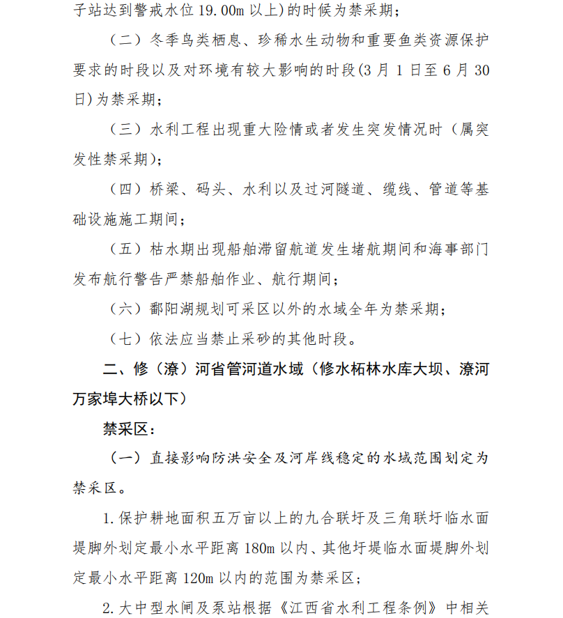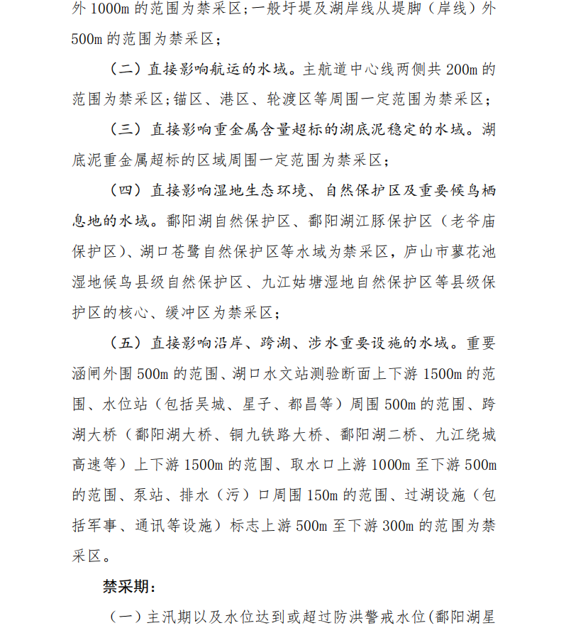 5、修河國家濕地公園范圍內(nèi)可采區(qū)3月~6月水生生物繁殖期;