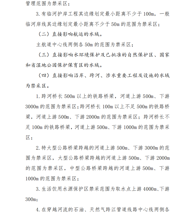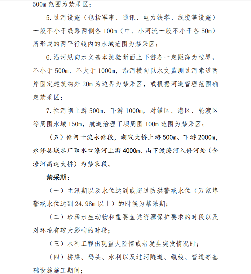 1、主汛期以及水位達(dá)到或超過防洪警戒水位(萬家埠警戒水位達(dá)到24.98m以上)的時候為禁采期;
