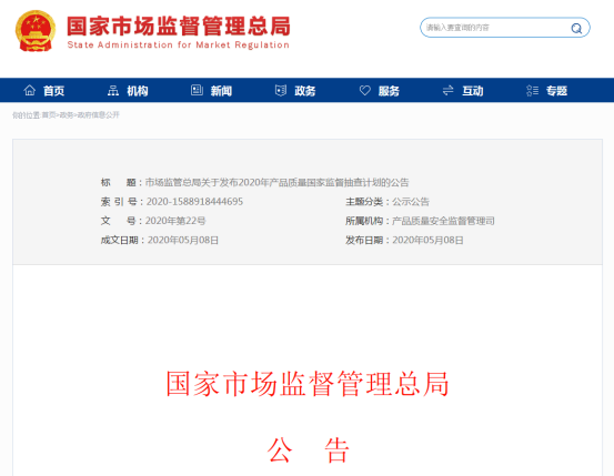 5月8日,市場監(jiān)管總局發(fā)布公告,公布了《2020年產品質量國家監(jiān)督抽查計劃》,計劃共包括131種產品,其中,建筑材料中包括水泥、建筑防水卷材、混凝土輸水管、鋁合金建筑型材、熱軋帶肋鋼筋、硬聚氯乙烯(PVC-U)管材、鋼管腳手架扣件等。