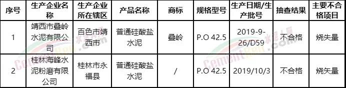 廣西市場(chǎng)監(jiān)管局官網(wǎng)通報(bào)2019年水泥等20種產(chǎn)品質(zhì)量廣西監(jiān)督抽查情況稱:2019年共抽查90家企業(yè)的166批次水泥產(chǎn)品,其中生產(chǎn)領(lǐng)域抽查159批次,流通領(lǐng)域抽查7批次。不合格產(chǎn)品2批次,不合格發(fā)現(xiàn)率為1.2%。其中生產(chǎn)領(lǐng)域抽查合格157批次,不合格產(chǎn)品2批次,不合格發(fā)現(xiàn)率為1.26%;抽查不合格項(xiàng)目為燒失量。