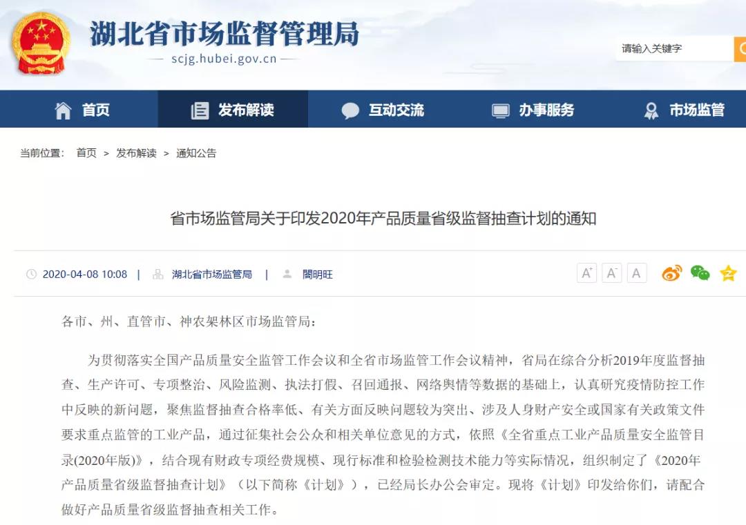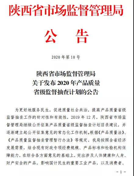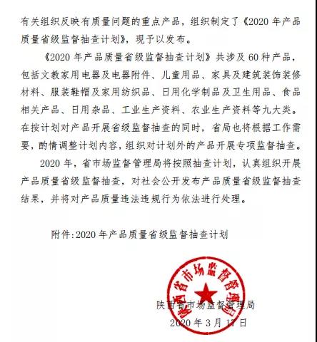 與此同時(shí),湖北、陜西、河南等多個(gè)省市地區(qū)陸續(xù)下發(fā)了2020年產(chǎn)品質(zhì)量國(guó)家監(jiān)督抽查計(jì)劃及細(xì)則。