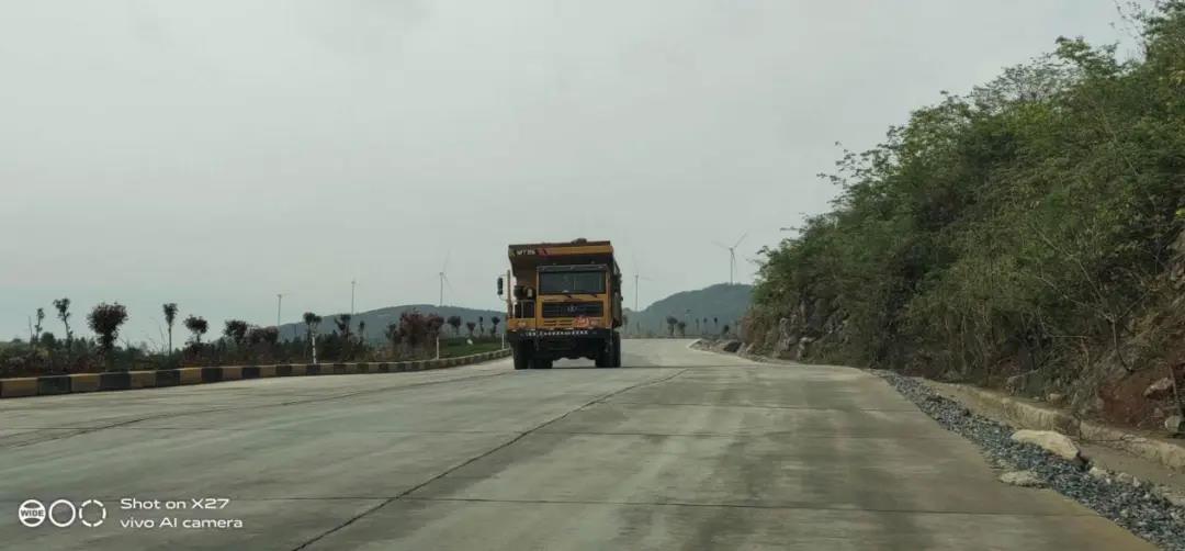 (1)道路設(shè)施。在與業(yè)主的積極溝通下,對礦山運礦道路全長約2.7公里進行路面硬化,道路寬8~9米,硬化厚度30cm,最大縱坡為8%,達到三級公路標準,并同步完善設(shè)置應急避險車道,彎道凹面鏡設(shè)置,道路護坡墻、截排水溝等設(shè)施,大大減少因路面坑洼不平產(chǎn)生的安全隱患,避免因路面寬度不足、無應急避險車道、彎道視野有限等因素發(fā)生運輸安全事故。