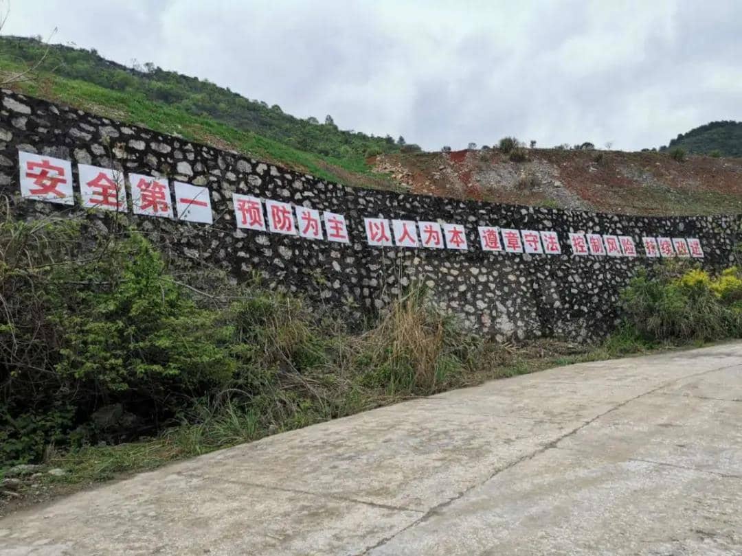 (1)作業(yè)現(xiàn)場。一方面實行清潔生產(chǎn),購買灑水車進行道路灑水降塵,定期檢查維護收塵設(shè)備,清除設(shè)備積塵、油污,設(shè)備備品備件歸類整齊擺放到指定位置,收集廢油、白色垃圾等下山處理,確保作業(yè)現(xiàn)場清潔。另一方面加強形象宣傳,在礦山視野開闊位置設(shè)置參觀平臺并地面硬化,設(shè)置宣傳欄和宣傳海報,完善齊全礦山現(xiàn)場安全警示標示牌。