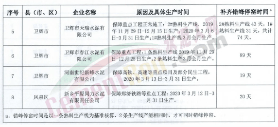 8、新鄉(xiāng)平原同力水泥有限責(zé)任公司需補齊錯峰停窯時間20天。
