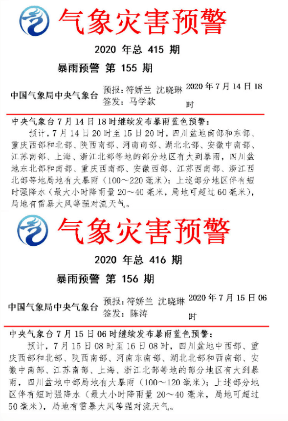 中央氣象臺(tái)從7月9日至15日上午連續(xù)發(fā)布12期暴雨預(yù)警: