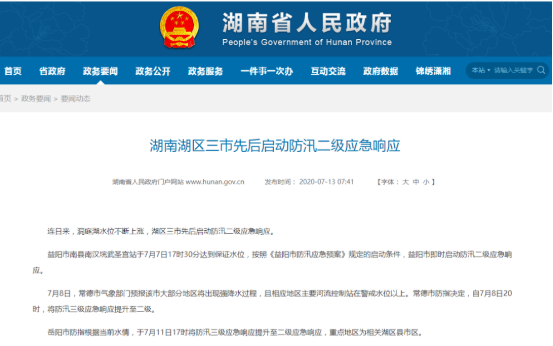 湖南省益陽(yáng)市、常德市、岳陽(yáng)市先后啟動(dòng)防汛二級(jí)應(yīng)急響應(yīng)。