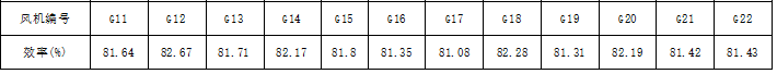 隨著水泥窯線能耗指標(biāo)要求的不斷提升,某大型水泥集團(tuán)下屬重點(diǎn)企業(yè)決定對(duì)其兩條5000t/d熟料線的篦冷機(jī)進(jìn)行四代機(jī)改造,其中一線篦冷機(jī)配套我司“睿暢”系列高效篦冷機(jī)冷卻風(fēng)機(jī)。項(xiàng)目于2020年3月底安裝完成,窯線正常運(yùn)行后對(duì)篦冷風(fēng)機(jī)進(jìn)行測(cè)試,實(shí)際運(yùn)行效率均在81%--83%之間,見下表。