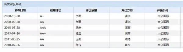 大公表示,按照2017年9月華晨集團與債權(quán)投資計劃受托人太平資產(chǎn)管理有限公司簽署的《太平一一華晨汽車制造產(chǎn)業(yè)升級債權(quán)投資計劃投資合同》約定,華晨集團應(yīng)于2020年9月21日劃撥季度應(yīng)付利息。截至2020年10月14日,華晨集團仍未將應(yīng)付季度利息劃撥至債權(quán)投資計劃托管人賬戶。而東方金誠很罕見的在債券違約當(dāng)天就掛出了評級下調(diào)公告,華晨集團的主體信用評級再一次斷崖式下跌至BBB。