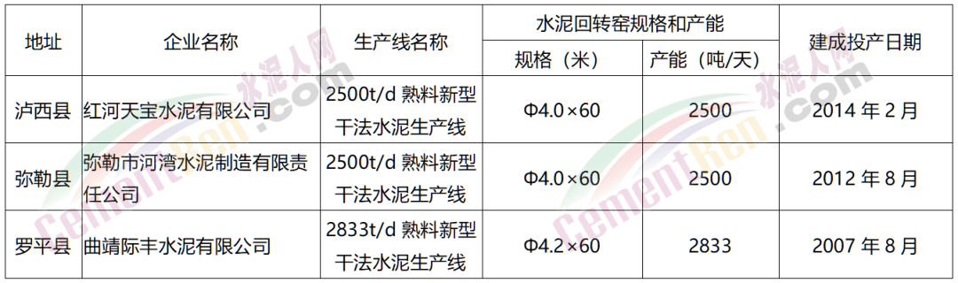 截止2020年8月末已建成投產(chǎn)112條熟料生產(chǎn)線,4條在建線2條新建線,合計(jì)118條熟料線 。由于市場(chǎng)競(jìng)爭(zhēng)激烈,成本高的小規(guī)模生產(chǎn)線多處于停產(chǎn)狀態(tài),這也給了新建生產(chǎn)線置換產(chǎn)能以契機(jī)。以紅獅水泥和海螺水泥擬建生產(chǎn)線為例:紅河州彌勒紅獅擬建項(xiàng)目:通過(guò)退出紅河天寶、 彌勒河灣、曲靖際豐三條熟料生產(chǎn)線,通過(guò)1.25:1比例減量置換新建5200t/d熟料生產(chǎn)線。
