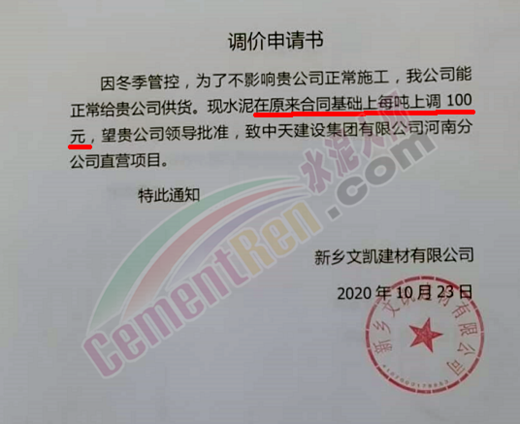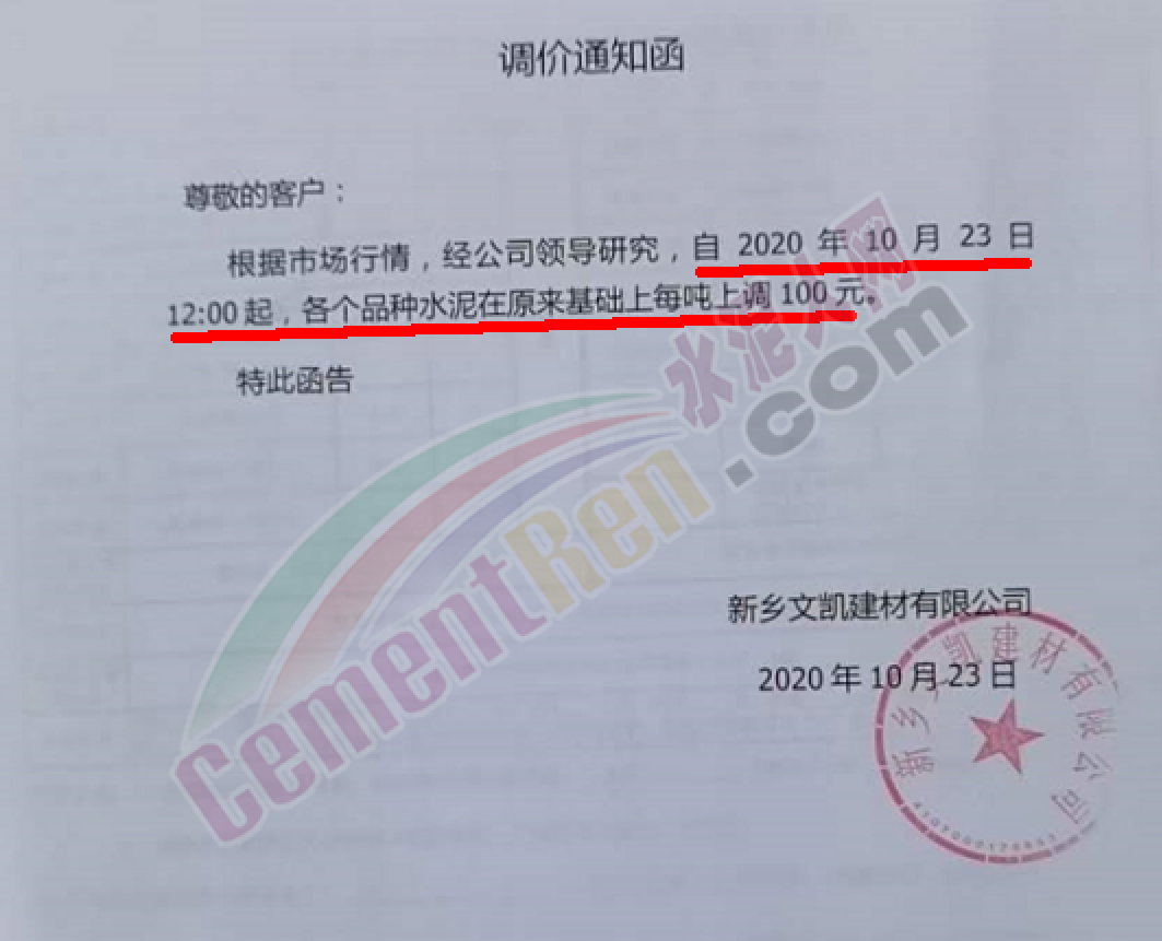 水泥人網(wǎng)通訊員消息,因重污染天氣臨停影響,河南多區(qū)域水泥企業(yè)通知價格上調(diào),10月22日~23日鄭州、新鄉(xiāng)、許昌、駐馬店、安陽、禹州、登封等地陸續(xù)通知上調(diào)高標(biāo)水泥價格30元/噸。目前區(qū)域內(nèi)多數(shù)熟料線停窯檢修,管控加強后,水泥生產(chǎn)受限,庫存下滑,周邊區(qū)域有意陸續(xù)跟進上調(diào)。新鄉(xiāng)區(qū)域水泥經(jīng)銷企業(yè)新鄉(xiāng)凱文建材有限公司通知因冬季管控,水泥在原合同基礎(chǔ)上每噸上調(diào)100元。