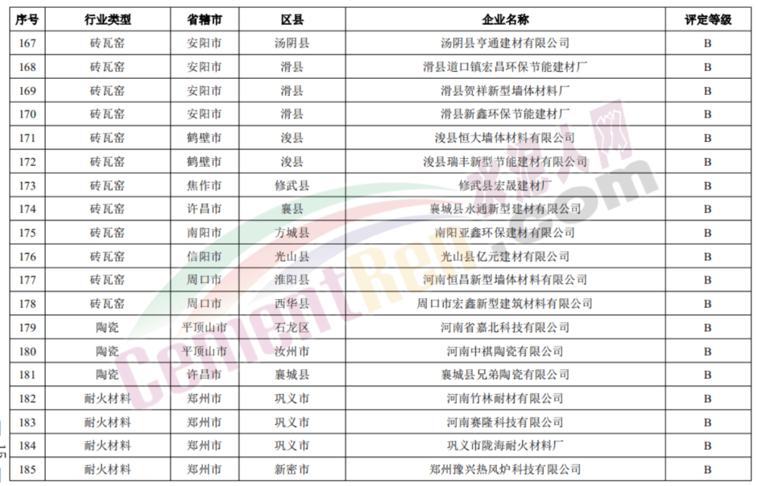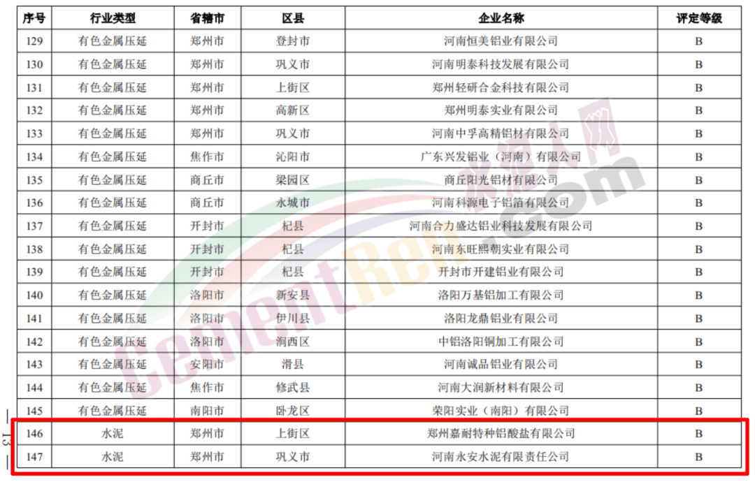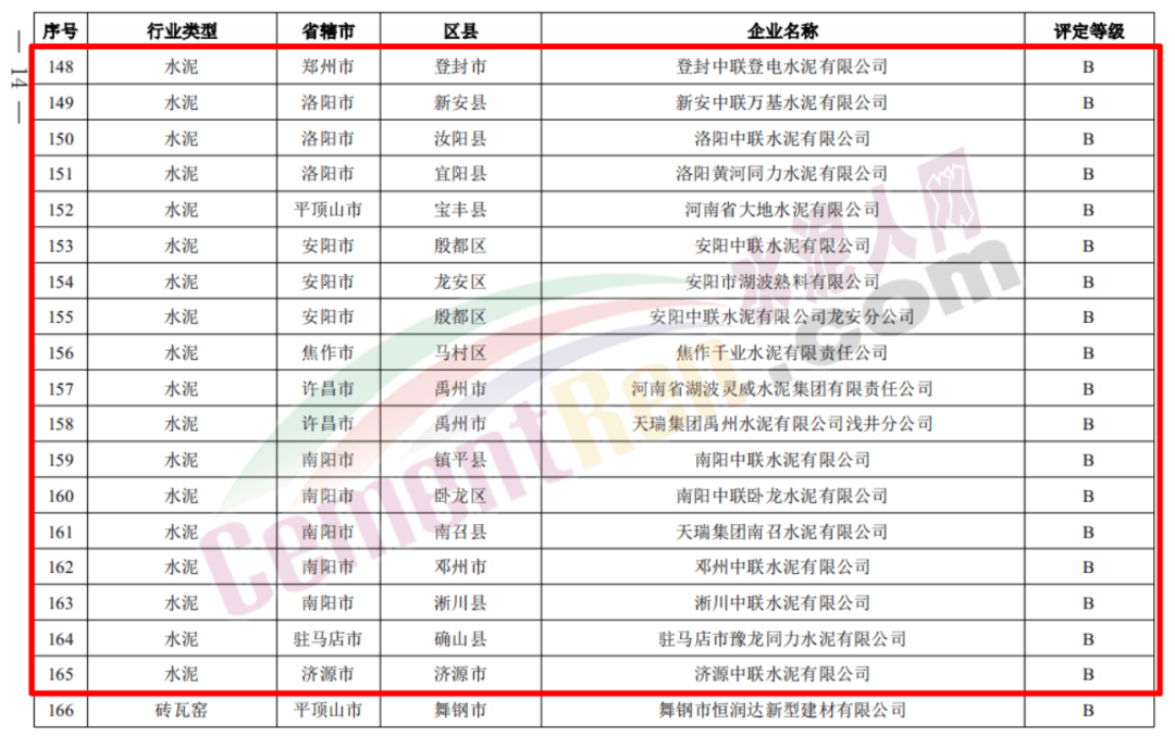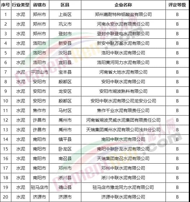 包括登封中聯(lián)、新安中聯(lián)、洛陽(yáng)中聯(lián)、濟(jì)源中聯(lián)、鄧州中聯(lián)、淅川中聯(lián)、南陽(yáng)中聯(lián)、安陽(yáng)中聯(lián)、安陽(yáng)湖波、大地水泥等20家企業(yè)獲評(píng)B級(jí)。