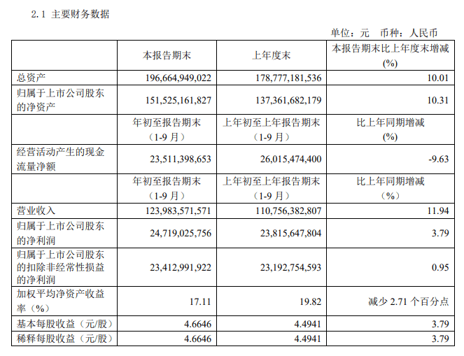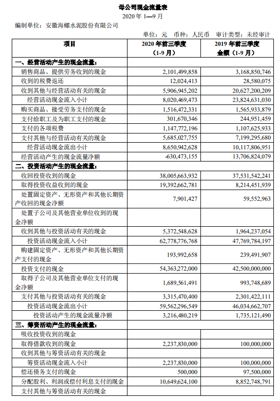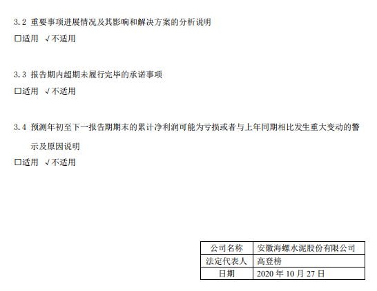 海螺水泥10月27日晚間發(fā)布三季度業(yè)績公告稱,2020年前三季度營收約1239.84億元,同比增長11.94%;凈利潤約247.19億元,同比增長3.79%;基本每股收益約4.66元,同比增長3.79%。