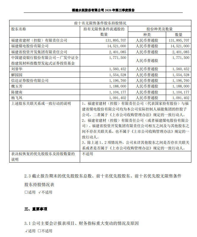 全國水泥價(jià)格指數(shù)為150.55點(diǎn),年內(nèi)首次向上突破150點(diǎn),10月累計(jì)已經(jīng)上漲超過2.8%。其中塔牌集團(tuán)公告稱,受益于整體水泥綜合售價(jià)高于上年同期,前三季度凈利同比增31%。對于第三季度凈利潤“折戟”與對第四季度的業(yè)績預(yù)期,福建水泥有關(guān)人士較為“謹(jǐn)慎”,表示按正常來說,進(jìn)入旺季應(yīng)該漲價(jià),但能否上漲“很難說”。如此“謹(jǐn)慎”或許與福建省水泥企業(yè)的格局有關(guān)。水泥由于附加價(jià)值較低、運(yùn)費(fèi)成本較大,具有明顯的區(qū)域性特征。而國內(nèi)水泥行業(yè)經(jīng)過“洗牌”普遍集中度較高,部分省區(qū)前三大水泥企業(yè)產(chǎn)能集中度超過70%,而福建前三大水泥企業(yè)產(chǎn)能集中度為36.95%,排名全國倒數(shù)第二。產(chǎn)能集中度較低容易“互打價(jià)格戰(zhàn)”。數(shù)據(jù)則顯示,2020年上半年,福建水泥、塔牌集團(tuán)、冀東水泥、海螺水泥的銷售毛利率分別為26.60%、43.82%、35.67%、34.93%。福建水泥的銷售毛利率明顯低于同行。記者注意到,三季度福建水泥前十大股東“大進(jìn)大出”,除了原有“老股東”,7個席位均為新進(jìn),其中中證全指建筑材料指數(shù)型基金新進(jìn)177萬股、信達(dá)證券新進(jìn)120萬股。