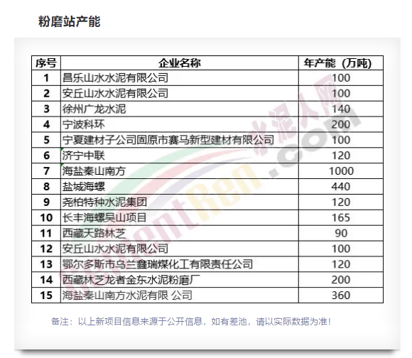 近日,全國有15個新建粉磨站落地,項目投建方包括中聯(lián)、西南、華新、堯柏等多家集團企業(yè),合計產能共3355萬噸/年,詳情如下表: