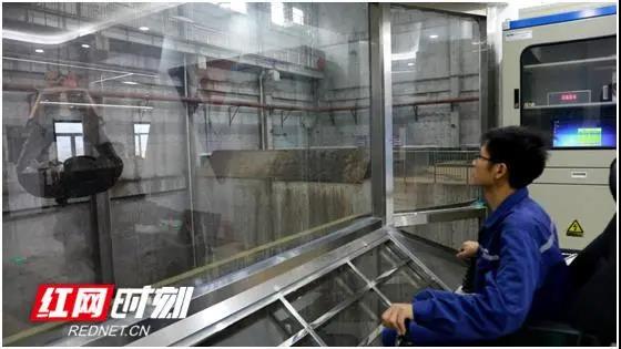 10月26日,在湖南省祁陽縣海創(chuàng)環(huán)保科技有限公司中控操作中心,技術(shù)人員正透過玻璃墻操控大型機器手處理廢物垃圾。說到垃圾處理廠,很多人的第一印象就是惡臭難聞,而這里卻聞不到一絲異味。