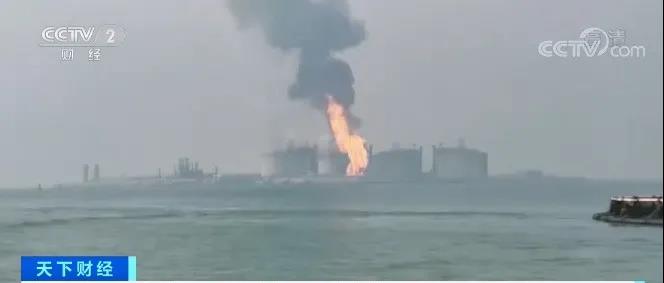 多段視頻顯示,當(dāng)時,鐵山港區(qū)LNG液化天然氣接收站碼頭內(nèi),一LNG儲罐頂部躥起火苗,滾滾濃煙里,火勢十分猛烈。事發(fā)后,多名身著制服,頭戴安全帽的工人快速撤離起火儲罐。