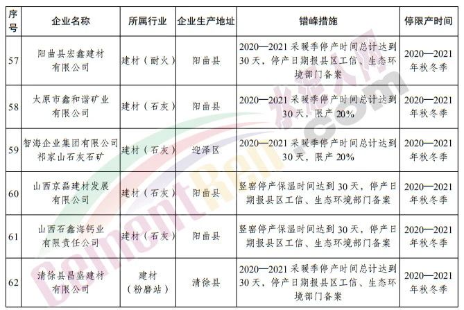 太原市 2020—2021 年秋冬季工業(yè)企業(yè)錯(cuò)峰生產(chǎn)實(shí)施方案提到,依據(jù)有關(guān)規(guī)定和要求,堅(jiān)決打贏太原市藍(lán)天保衛(wèi)戰(zhàn),確??諝赓|(zhì)量目標(biāo)任務(wù)的完成。從2020 年 11 月 1 日至 2021 年 3 月 31 日重點(diǎn)對(duì)鋼鐵、建材、焦化、鑄造、 有色、化工等高排放行業(yè),實(shí)施錯(cuò)峰生產(chǎn)。