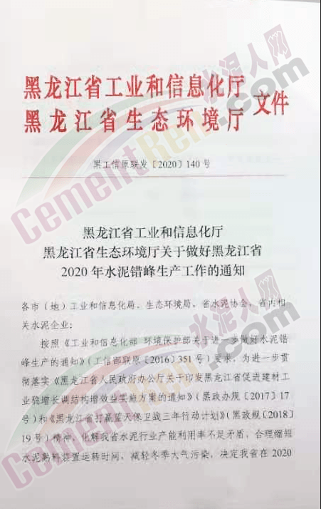 《通知》要求,自2020年11月15日至12月31日,在黑龍江省境內(nèi)所有水泥熟料生產(chǎn)企業(yè)(含利用電石渣生產(chǎn)熟料的企業(yè))全面實行錯峰生產(chǎn),其中承擔(dān)協(xié)同處置城市生活垃圾及有毒有害廢棄物等任務(wù)的生產(chǎn)線原則上可以不進行錯峰生產(chǎn),應(yīng)適當(dāng)降低水泥生產(chǎn)負(fù)荷。