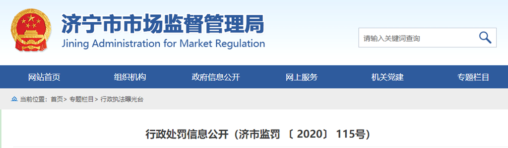 濟(jì)市監(jiān)罰 〔2020〕115號(hào) |