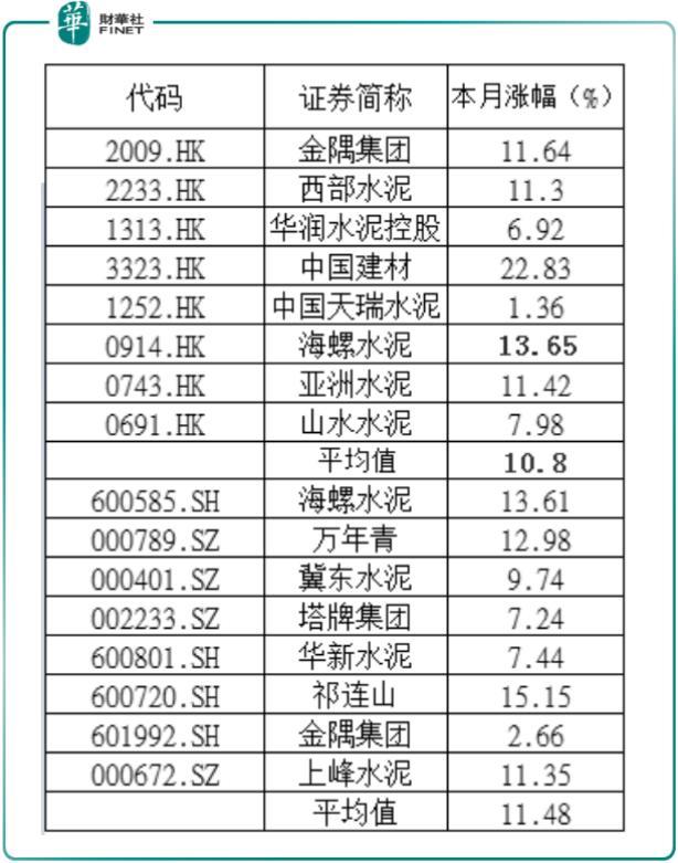 但需要注意的是,與A、H股資本市場水泥股板塊漲勢欣欣向榮的景象不同的是,個股表現(xiàn)則是差強人意,多數(shù)水泥股跑輸所處板塊漲幅及大市,存在分化的情況。
