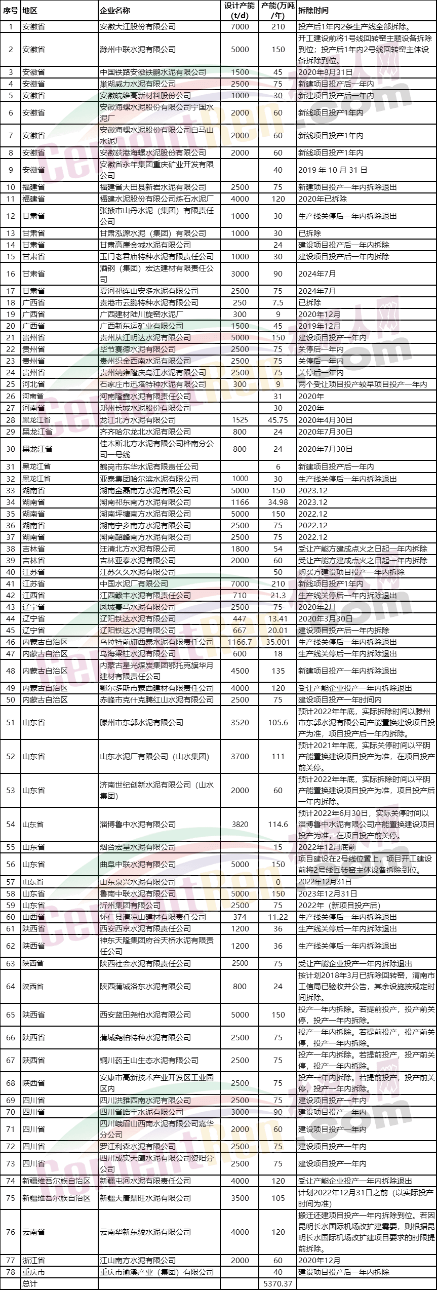 據(jù)水泥人網(wǎng)不完全統(tǒng)計,自2020年以來,各地工信廳發(fā)布的產(chǎn)能置換情況來看,關(guān)停的水泥企業(yè)共78家,涉及產(chǎn)能5370.37萬噸,拆除及關(guān)停時示如下所示: