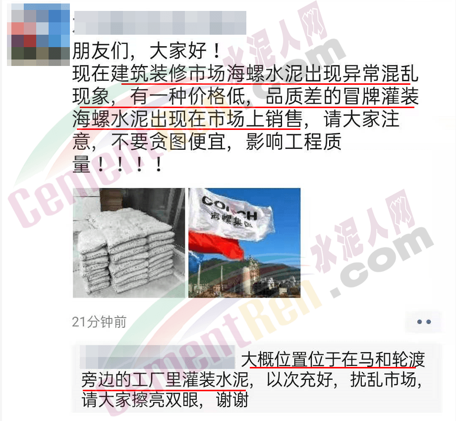 類似的假冒偽劣在各區(qū)域時有發(fā)生,且多為無證生產(chǎn)的黑作坊,類似的作坊生產(chǎn)產(chǎn)品質量嚴重不合格,不僅給下游市場帶來諸如價格超低,投訴超多等不僅有損正規(guī)企業(yè)品牌形象,更令市場亂相頻發(fā)。用于建筑裝修或民建市場,更是隱患重重。類似的作坊生產(chǎn)和銷售的多數(shù)是PC42.5或32.5級水泥。