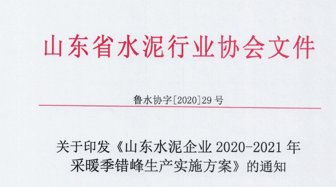 日前,山東省水泥行業(yè)協(xié)會(huì)發(fā)布《《山東水泥企業(yè)2020-2021年釆暖季錯(cuò)峰生產(chǎn)實(shí)施方案》的通知》要求2020年12月1日0時(shí)-2021年3月31日24時(shí)山東水泥企業(yè)的水泥熟料生產(chǎn)線實(shí)施錯(cuò)峰生產(chǎn),停產(chǎn)4個(gè)月。2019年未完成錯(cuò)峰停產(chǎn)160天任務(wù)的水泥熟料生產(chǎn)線要求于12月1日前補(bǔ)停。