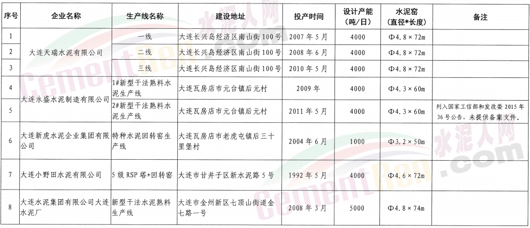 遼寧省水泥熟料生產(chǎn)線(xiàn)清單截止時(shí)間:2020年11月