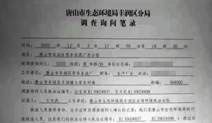 日前,河北省唐山市生態(tài)環(huán)境局夜查豐潤(rùn)區(qū)京豐水泥廠,發(fā)現(xiàn)有生產(chǎn)跡象和環(huán)境污染問(wèn)題后,遭到該企業(yè)人員尾隨、跟蹤、阻礙,并辱罵環(huán)保執(zhí)法人員。