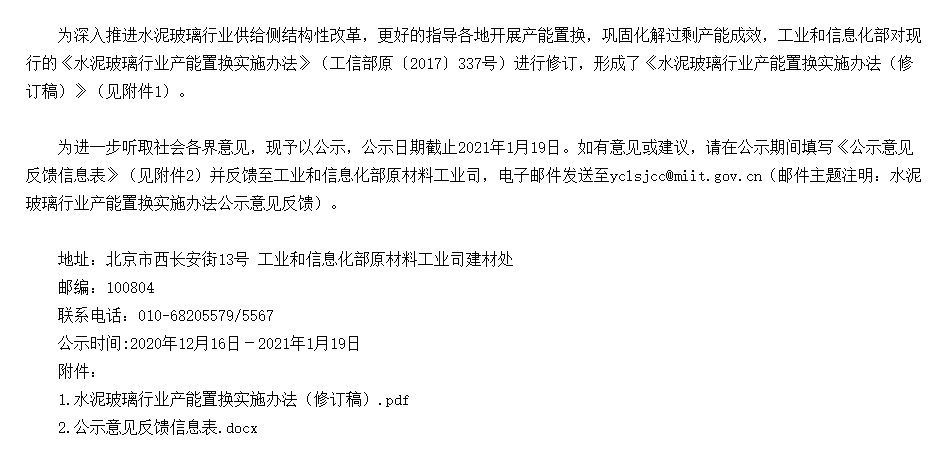第二十二條 各省級(jí)工業(yè)和信息化主管部門可以根據(jù)本辦法,結(jié)合本地實(shí)際情況進(jìn)一步明確細(xì)化程序和嚴(yán)格有關(guān)要求。第二十三條 本辦法自 2021 年 x 月 x 日起施行。原《水泥玻璃行業(yè)產(chǎn)能置換實(shí)施辦法》(工信部原〔2017〕337 號(hào))同時(shí)廢止。