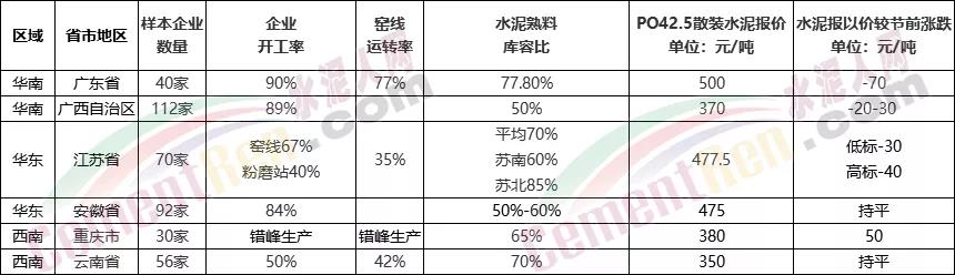 2021年1季度已然過半,已經(jīng)有企業(yè)高調(diào)報喜,利潤遠(yuǎn)超上年同期。近期各地復(fù)工復(fù)產(chǎn)加速,水泥熟料庫容比較節(jié)前略有上漲,水泥價格多保持與節(jié)前持平狀態(tài)。從近期復(fù)工復(fù)產(chǎn)的區(qū)域來看,華南、華東、西南多區(qū)域企業(yè)開工率多在50%以上,華南地區(qū)兩廣區(qū)域開工率達(dá)到90%左右,窯線運(yùn)轉(zhuǎn)率也逐步提升。