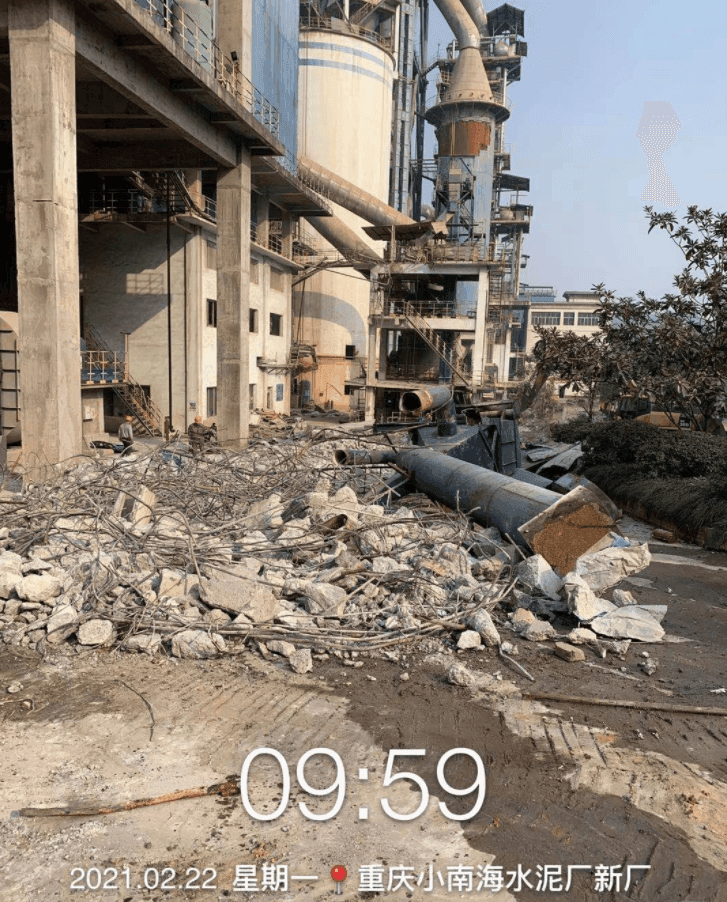 水泥人網(wǎng)通訊員消息,重慶小南海水泥廠兩條1200t/d生產線拆除工作持續(xù)進行中。