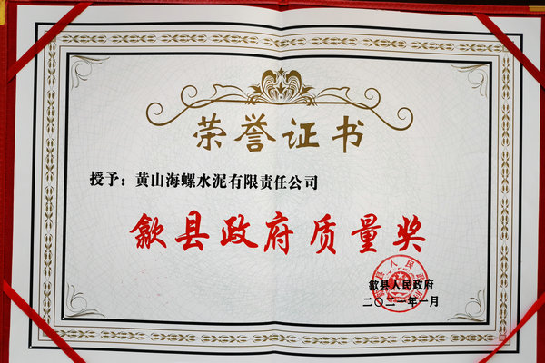2021年2月19日下午,歙縣縣委、縣政府召開的縣經(jīng)濟(jì)開發(fā)區(qū)改革創(chuàng)新動員大會上又傳出喜訊:黃山海螺水泥公司再獲“2020年度工業(yè)稅收10強(qiáng)”和歙縣政府第三屆質(zhì)量獎。黃山海螺總經(jīng)理周安夢現(xiàn)場領(lǐng)獎,代表公司接受表彰。