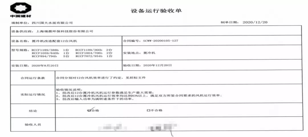 瑞晨環(huán)保高效篦冷風(fēng)機(jī)配合凱盛院配套IKN第四代篦冷床的升級(jí)換代項(xiàng)目完美驗(yàn)收,得到凱盛院與四川國(guó)大水泥有限公司各層領(lǐng)導(dǎo)以及西南水泥高層的高度認(rèn)可與一致好評(píng)。
