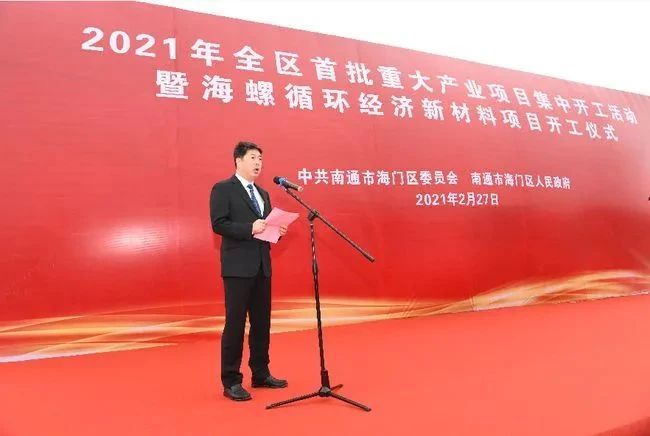 2月27日上午,江蘇省南通市海門(mén)區(qū)委、區(qū)政府在海門(mén)港新區(qū)海螺新材料項(xiàng)目現(xiàn)場(chǎng)舉行2021年全區(qū)首批重大產(chǎn)業(yè)項(xiàng)目集中開(kāi)工活動(dòng),動(dòng)員全區(qū)上下堅(jiān)定必勝信心,激發(fā)昂揚(yáng)斗志,大干快干、埋頭苦干、真抓實(shí)干,努力開(kāi)創(chuàng)施工項(xiàng)目熱火朝天、竣工項(xiàng)目接二連三、儲(chǔ)備項(xiàng)目源源不斷的生動(dòng)局面,為勇當(dāng)“兩爭(zhēng)一前列”領(lǐng)跑者提供強(qiáng)勁支撐。
