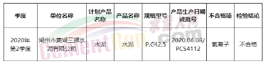 浙江產(chǎn)品質(zhì)量監(jiān)督抽查1個(gè)批次PC42.5水泥不合格