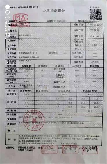 令人想不到的是,10月28日拆模板時竟然發(fā)現(xiàn)房頂?shù)乃噙€沒有完全凝固。我當(dāng)即就與柏寺營鄉(xiāng)的安運聯(lián)系。10月29日下午,安運與鄭家莊村的經(jīng)銷商高志杰一同到我家,讓我用小錘敲擊房頂邊,發(fā)現(xiàn)水泥一塊一塊的散落。經(jīng)銷商高志杰用手機錄了視頻,并且還拉走一袋剩余的水泥說要送到廠家檢驗。誰知,至今兩個多月過去了,一直沒有給我任何說法。期間,我只好把剩余的水泥送到“邯鄲市德忠建筑工程檢測有限公司”進行檢測。檢測結(jié)果:此水泥的抗折、抗壓各項指標(biāo)幾乎全部不符合標(biāo)準(zhǔn)。(視頻、照片、檢測報告等相關(guān)證據(jù)附后)盼望上級領(lǐng)導(dǎo)能夠體貼民情,在百忙中安排執(zhí)法人員查處偽劣商品。替平民百姓討一個公道!”